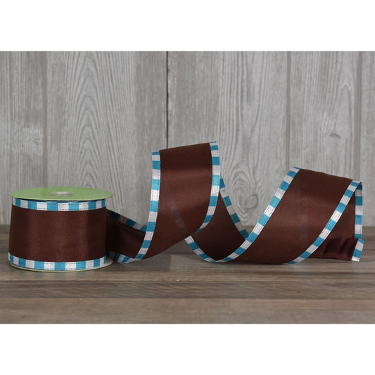 Chocolate Satin w/ Turquoise/ White Block Edge 2.5"x10yd