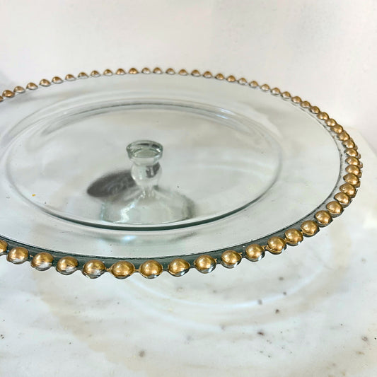 Clear Gold Glass Cake Stand 13" Dia x 3.5" H | SB