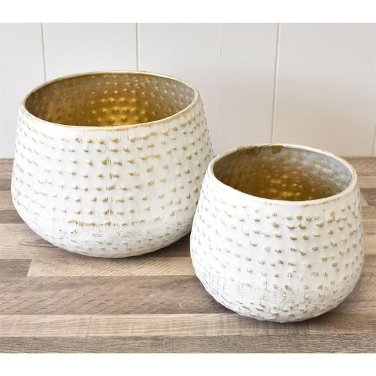 Embossed Dot Metal Planter Set of 2 in White/Gold