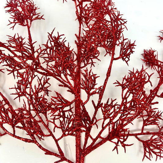Glittered Norfolk Pine Spray 32" - Red | KS