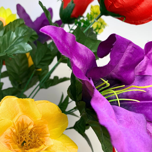 Lily / Rose / Lily / Cornflower Mixed Bush x 18 - RD/YL/PU 20" | CZE