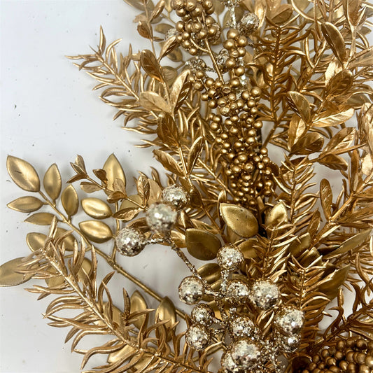 Marvelous Metallic Gold Mixed Foliage/Berry Stem 29" | XJ