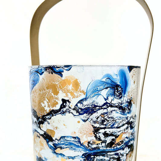 Navy Gold Watercolor Glass Candle Holder 18" H x 6" Dia | SB