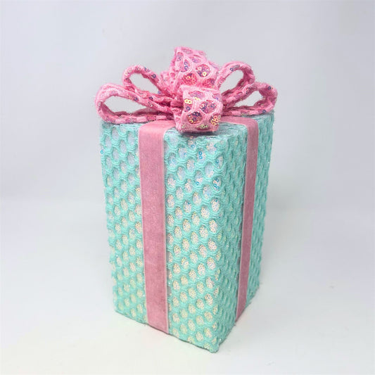 Sequin Confection Gift Box Table Top - Lt. Blue/Pink H:10" X D:5" | KS