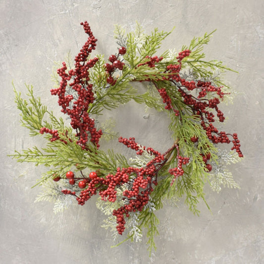 Set of 2 Snow Touched Cypress And Cedar Wreath With Red Berries 20"-30" in Red Green | QDC22