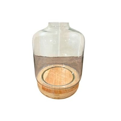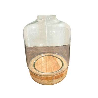 Glass Candle Holder W/Wood Base 11.75" H x 8.5" Dia | SB