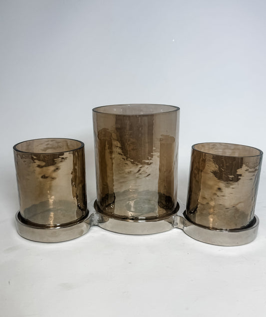 26”L Smoke Luster Glass Candle Holder Set of 7 pcs| SB