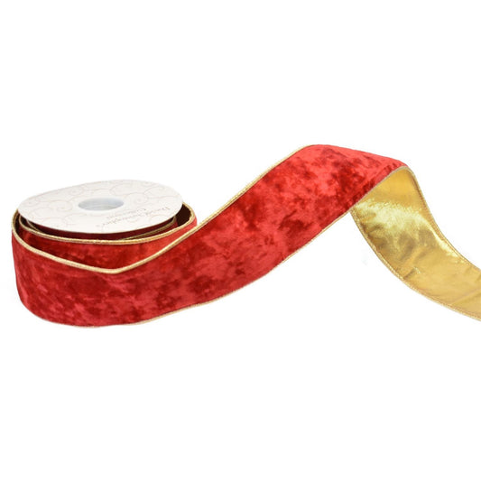 Elegant Red Velvet Ribbon w/ Gold back 2.5" x 10yd | IR