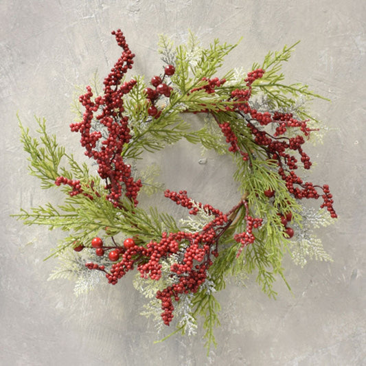 Snow Touched Cypress And Cedar Wreath With Red Berries 20"-30" in Red Green | QDC22