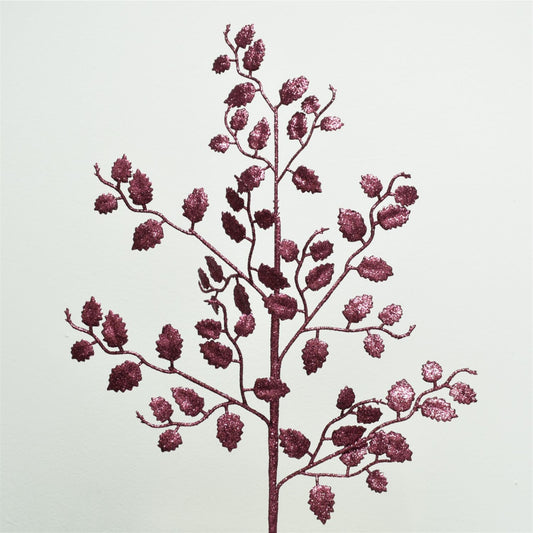 Glittered Holly Leaf Christmas Spray 26" in Plum | QD