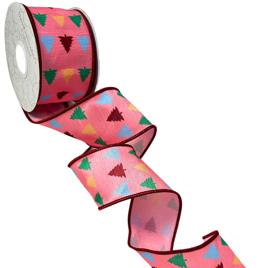 Pink Faux Dupioni Multi Color Tree Ribbon 2.5”X10YD | IR