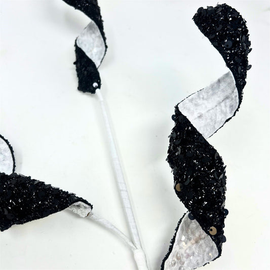 Black Glittered Ribbon with Tinsel Edge and Purple Backing 4" x 10YD | IRC22