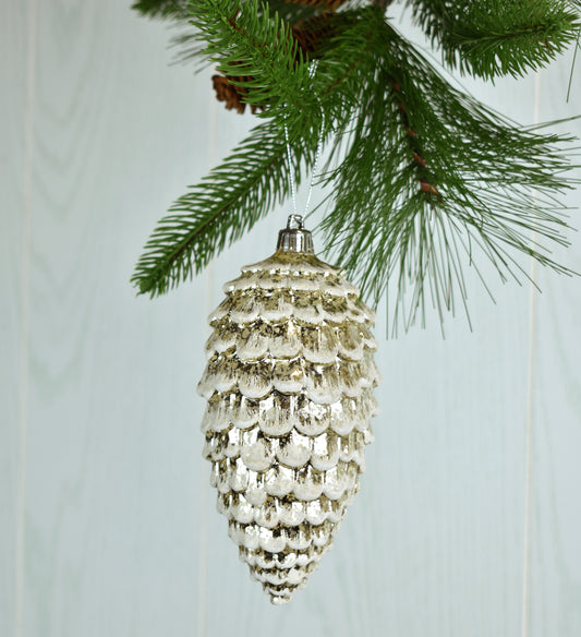 6.5" Mercury Cone with Snow Ornament in Champagne | XJB