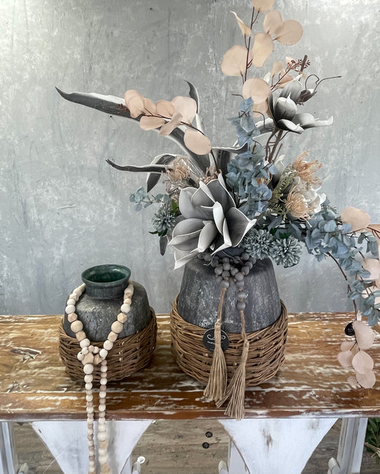 Large 15'' Wilmington Mercury Glass Vase with Woven Basket-Sage