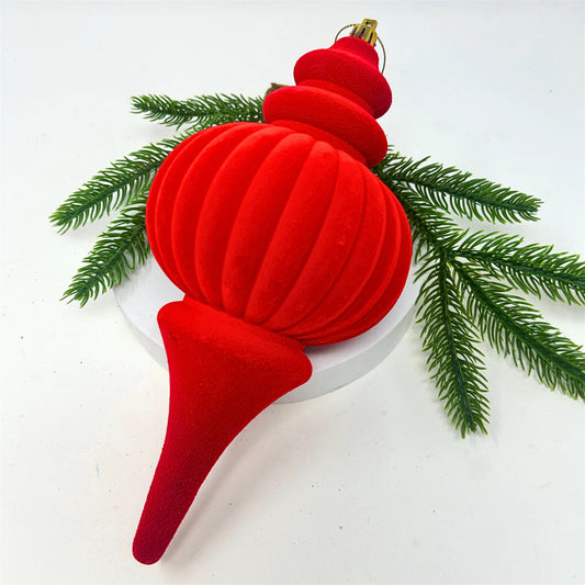 Plastic Flocked Finial Ornament - Cherry Red 10" | YK