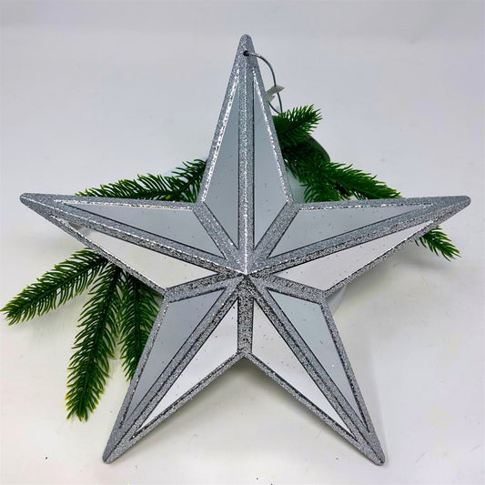 Plastic Mirror Star Glitter Ornament - Silver 11x10.6x3" | ZT