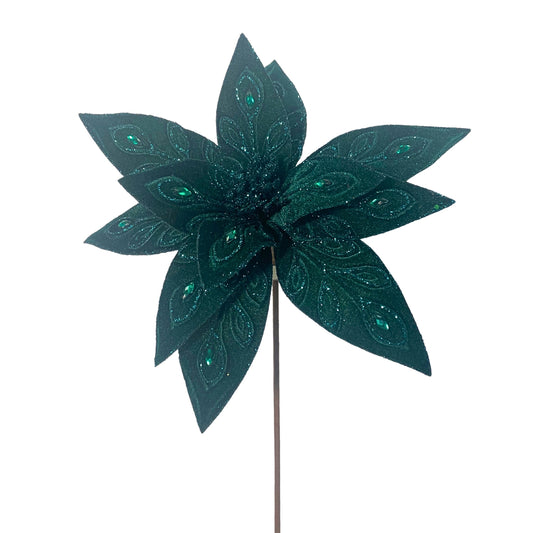 Bejeweled Emerald Poinsettia Stem 24" | QG