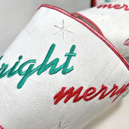 Merry and Bright Embroidery with Snowflakes on White Ribbon 4" x 10YD in Multi | IRC22