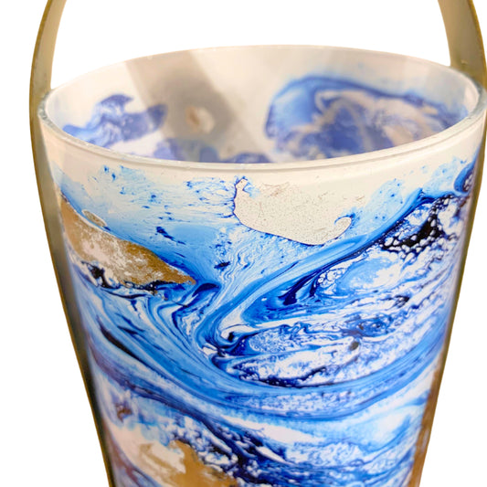 Navy Gold Watercolor Glass Candle Holder 11" H x 4" Dia | SB