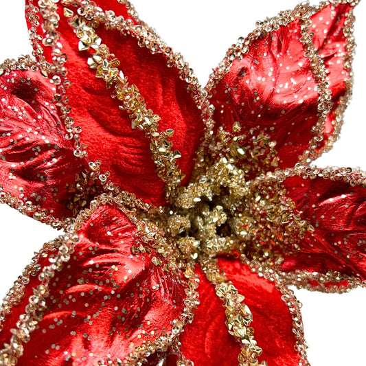 Metallic Velvet Poinsettia Stem - Red/Champagne 20”|TA