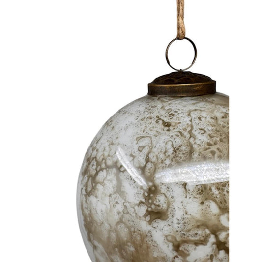 8" Glass Ball Marble Orn. - Gold/White | SB