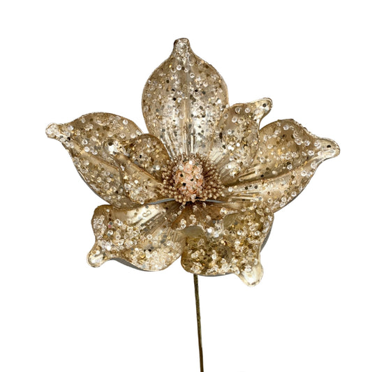 Glitz Sheer Wired Poinsettia Stem - Ivory/Gold | YS