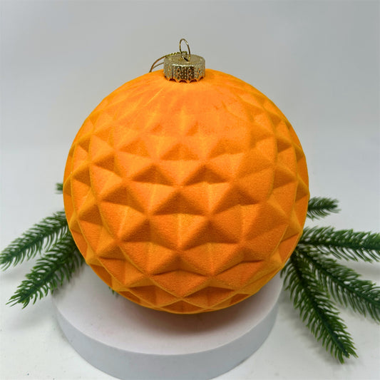 Plastic Flocked Diamond Ball Ornament - Tangerine 6" | YK
