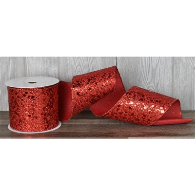Metallic Red Flakes w/Red backing Ribbon 4" x 10yd | YT