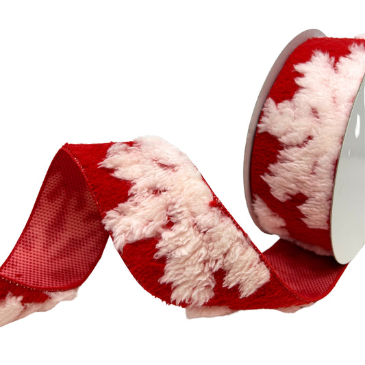 Fuzzy Red with White Snowflake Ribbon 2.5" x 10yd | YT
