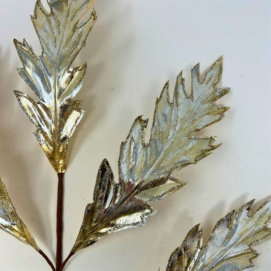 Metallic Glitter Acanthus Leaf Spray - Champagne 31" | KS