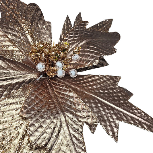Metallic Diamond Pattern Poinsettia Spray - Rose Gold 18” | YS