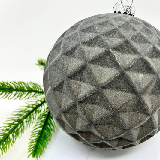 Plastic Flocked Diamond Ball Ornament - Charcoal 6" | YK