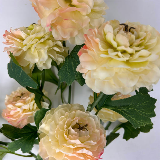 Ruffled Ranunculus Bush x9 - 21" Cream/Pink | GTE