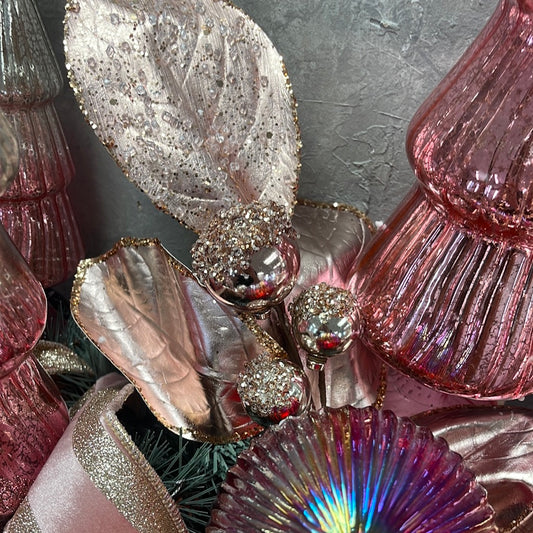 Icy Ice Metallic Magnolia Leaf Ball Spray 27.5" - Rose Gold | QG