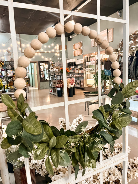 BOHO CHIC WOOD BEAD EUCALYPTUS WREATH 20" | QSE