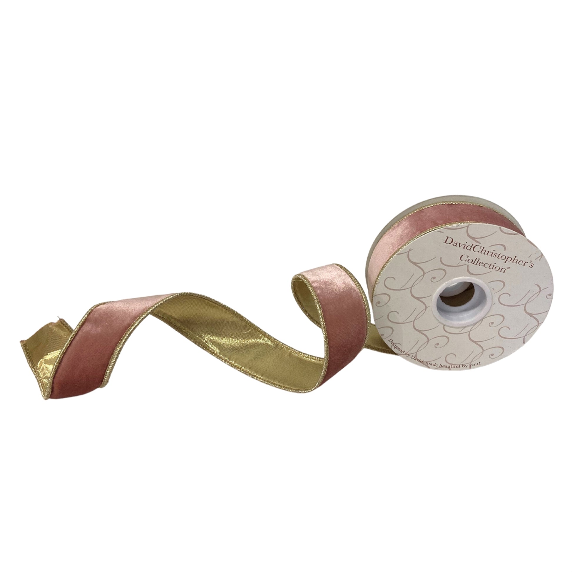 Rose/Pink Velvet Ribbon w/ Platinum Lame Back and Platinum Edge 1.5” x 10yd | IR