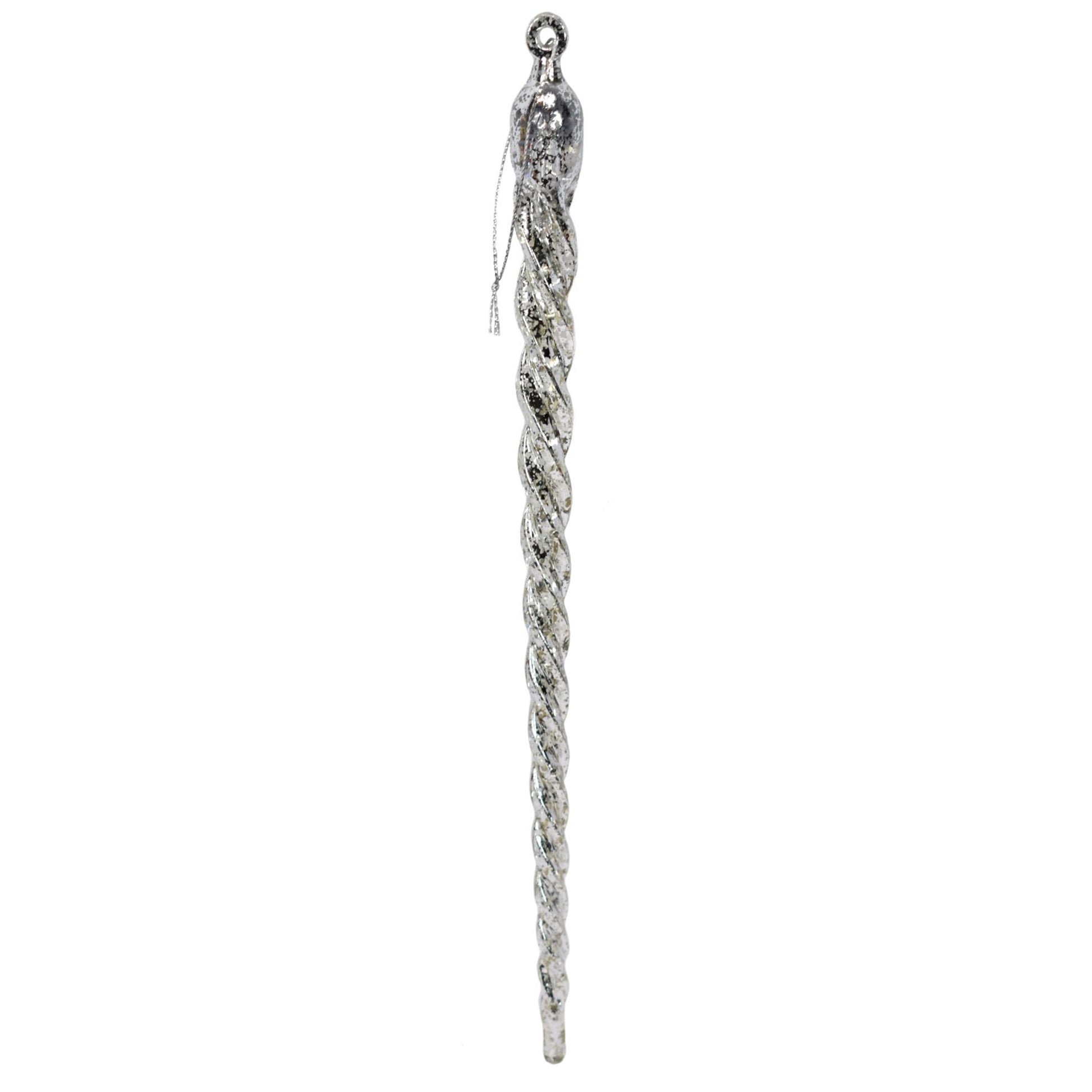 This 11" antique crystal icicle adds an element of classic elegance to your holiday decor. It is crafted in silver for a timeless look that will shine for years to come. Hang it on your tree or a favorite doorway for an exquisite display.