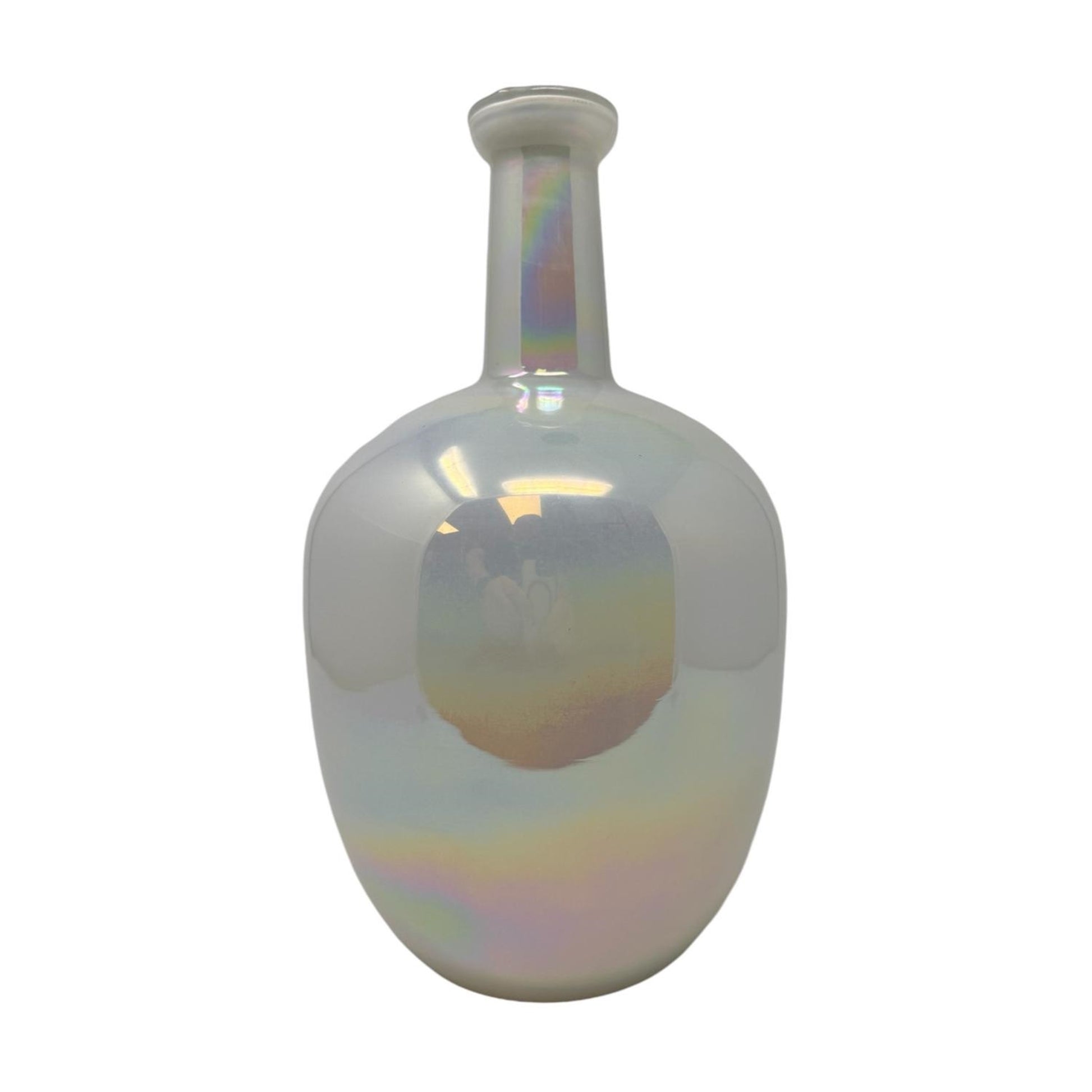 This 12" tall bottle vase is the perfect addition to any home decor. Made with high-quality pearl material, it is both elegant and durable. Its sleek design adds a touch of sophistication to any space. Enhance your living space with this beautiful and functional vase.