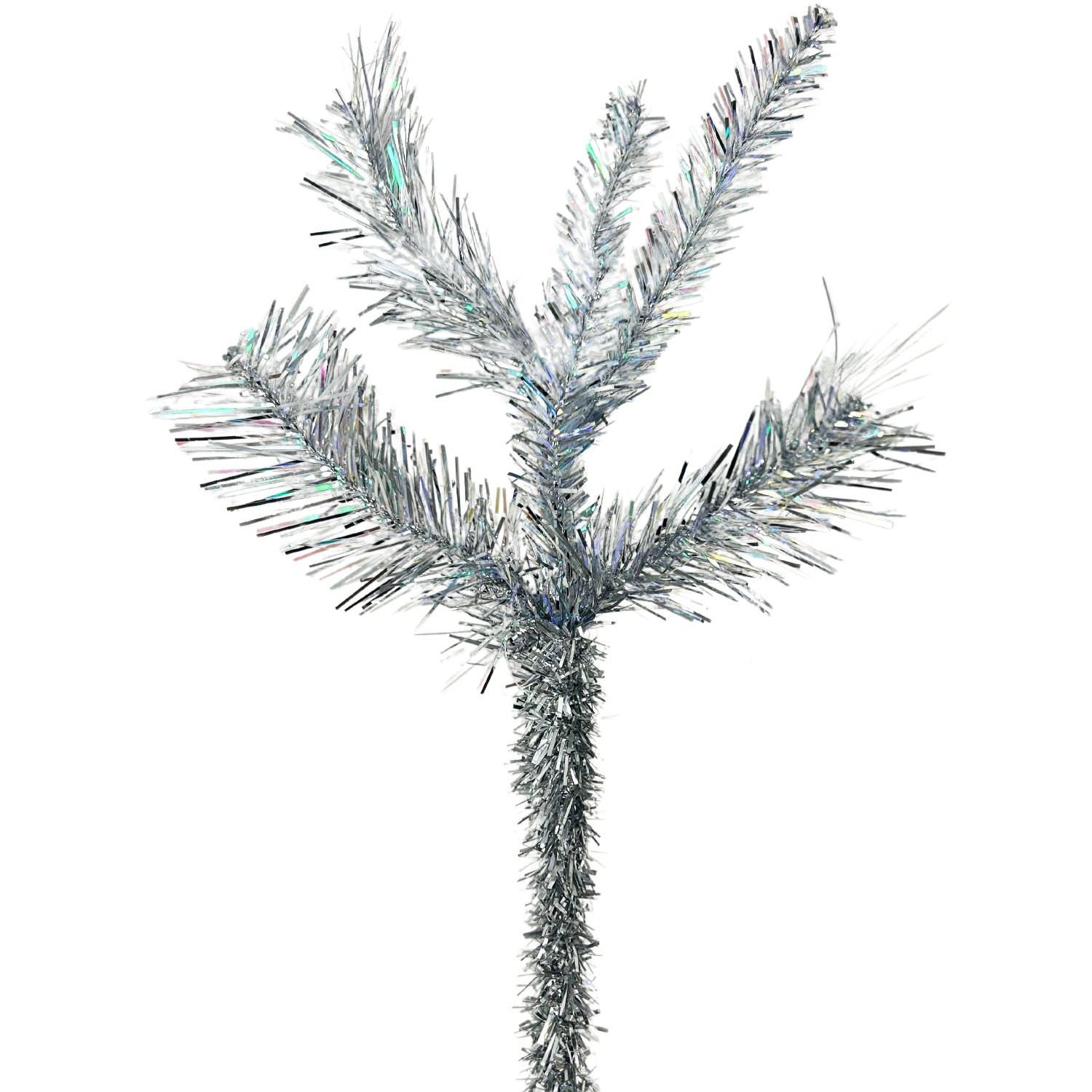 Enhance your Christmas decorations with our 15" silver tinsel spray! Featuring 6 tips, this spray adds a touch of sparkle and elegance to any holiday display. Perfect for adding vertical dimension to your tree, wreath, or garland. Uplift your festive atmosphere with this dazzling and versatile decoration.