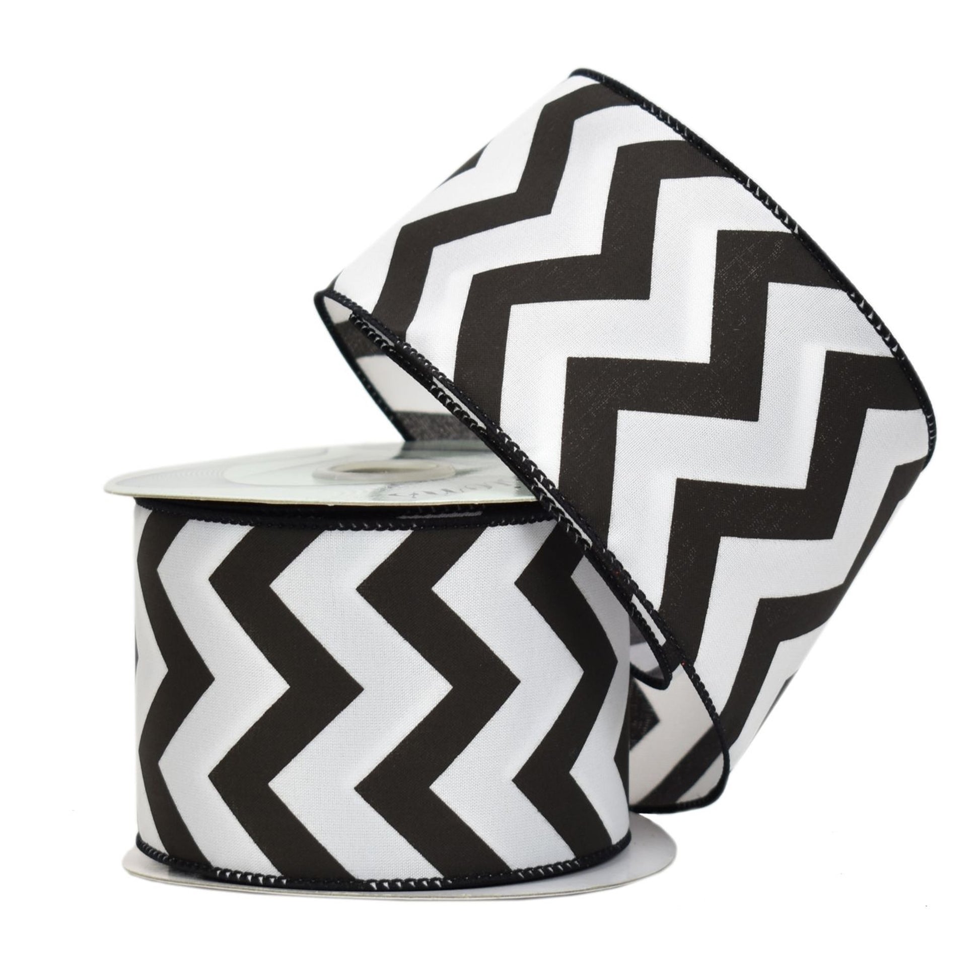 This 2.5" wide Chevron Ribbon comes in a 10 yard roll and features elegant black and white colors. With superior quality and perfect for any crafting or decorating needs, this ribbon is sure to add a stylish touch to your project.