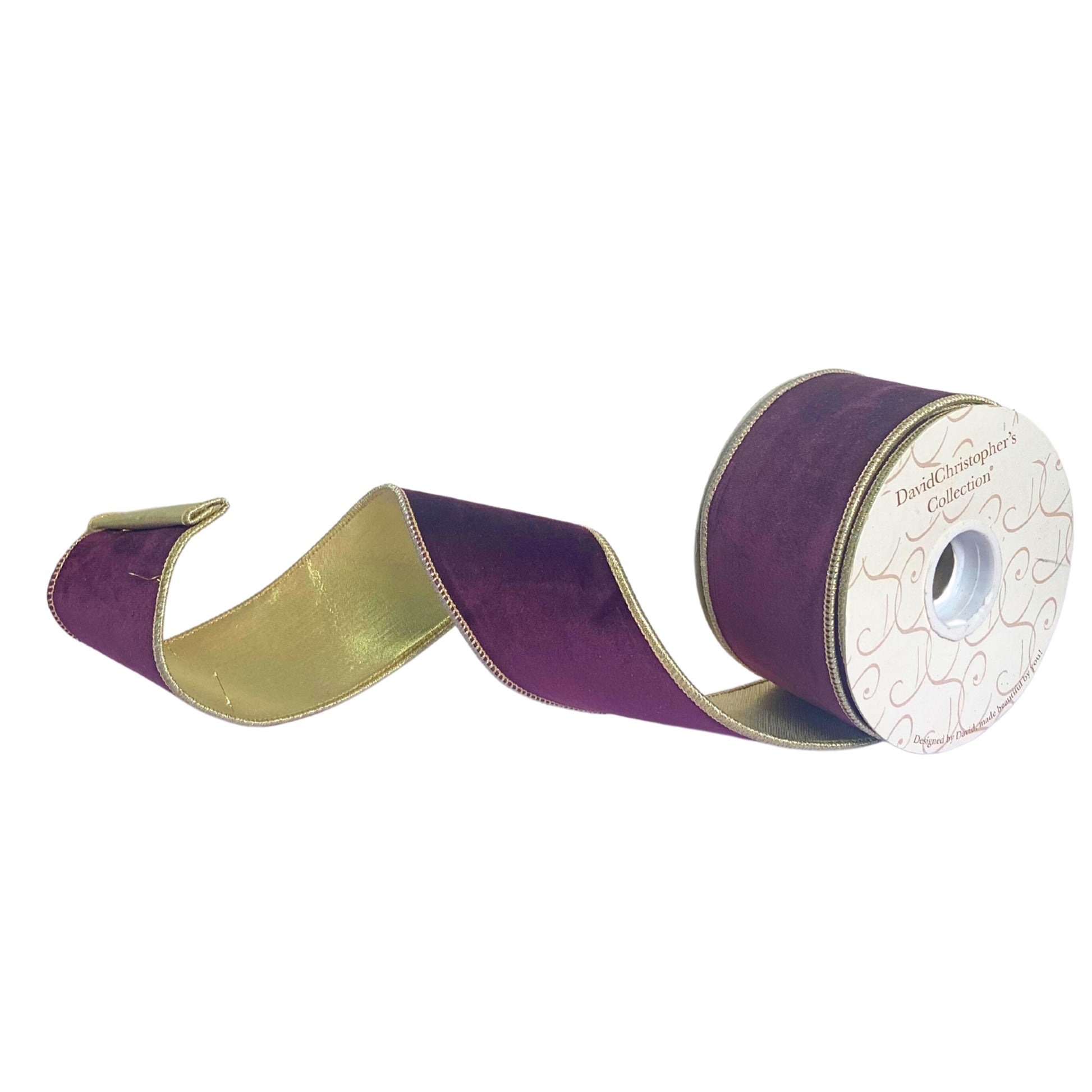 2.5”X10YD Purple Velvet Ribbon with Platinum Lame Back and Platinum Edge | IR