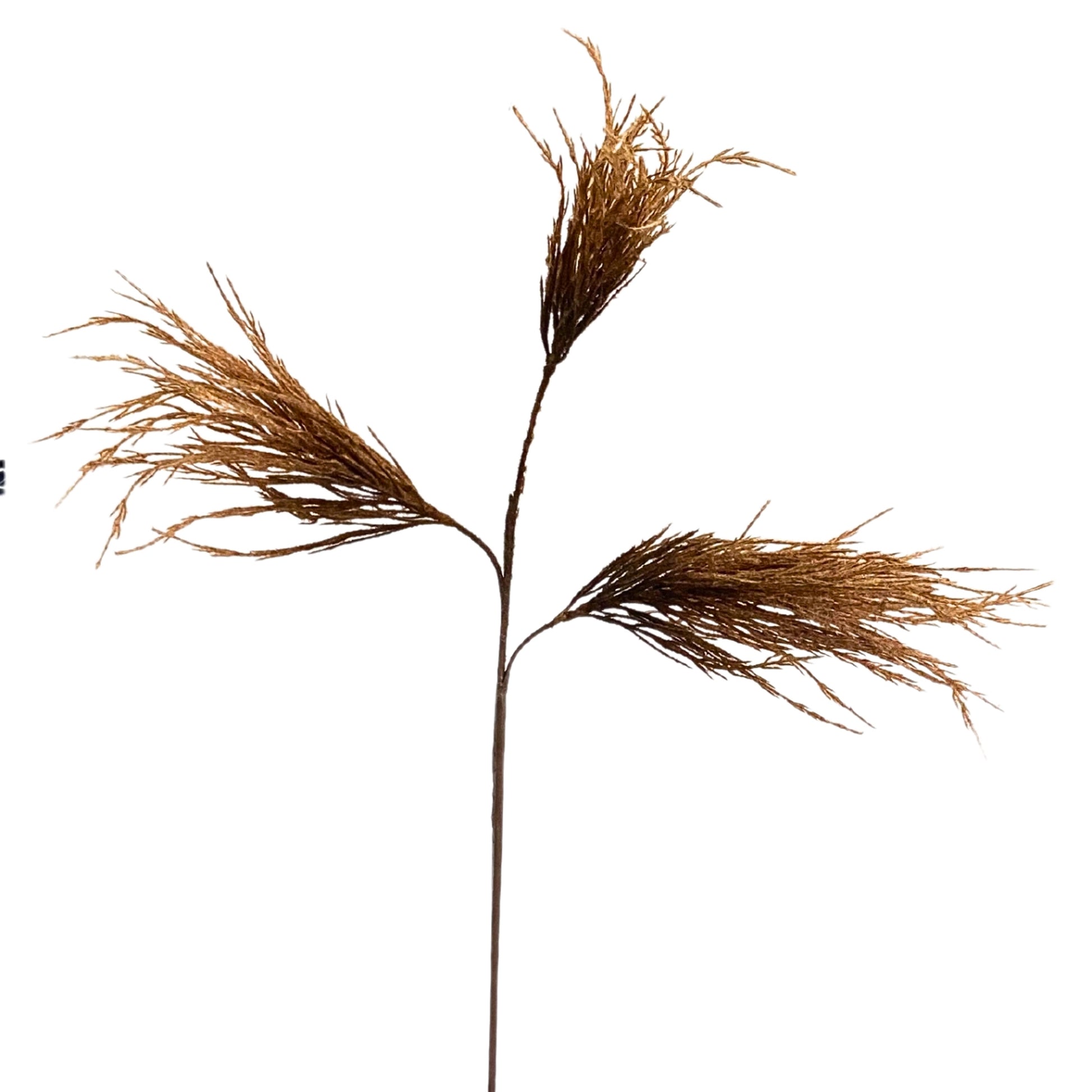 This 45" Pampas Spray X3 - Brown adds a natural, rustic touch to any space. Each handcrafted bundle is composed of three, 55-inch tall brown-colored pampas stalks. Perfect for decorating a mantelpiece or creating a centerpiece.