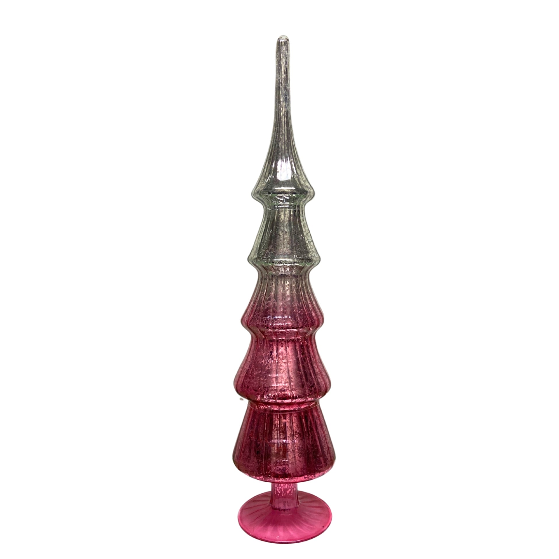 This 4''X4''X18'' Glass Pink & Silver Finial is perfect for the holidays. Featuring a unique design, this stunning glass Christmas tree topper is sure to add a touch of elegance and magic to your holiday decorations. This finial is a lasting decoration that will make your home sparkle for years to come.