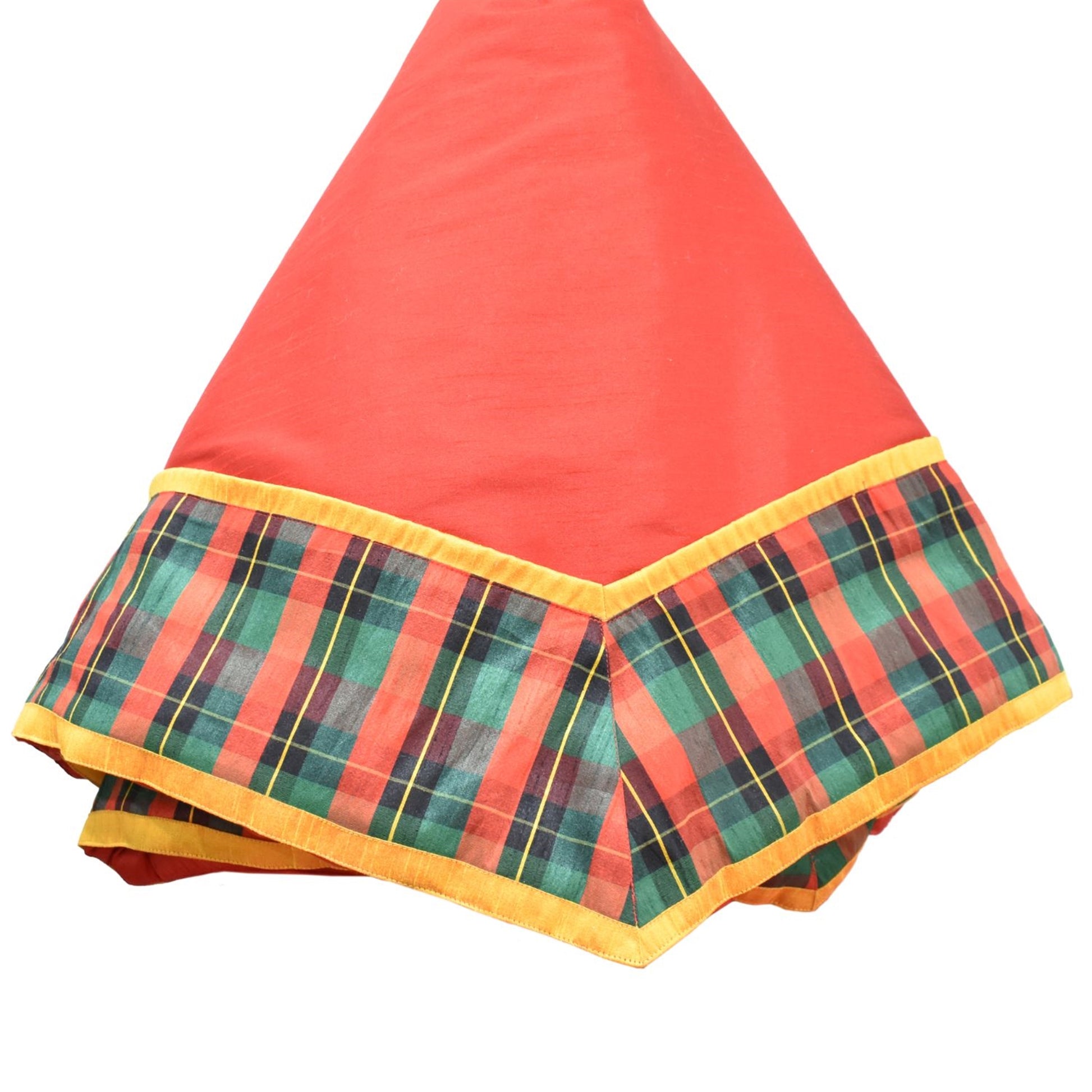 54" Diamond Shaped Red Faux Dupioni Tree Skirt with Red/Green Plaid Border | IR
