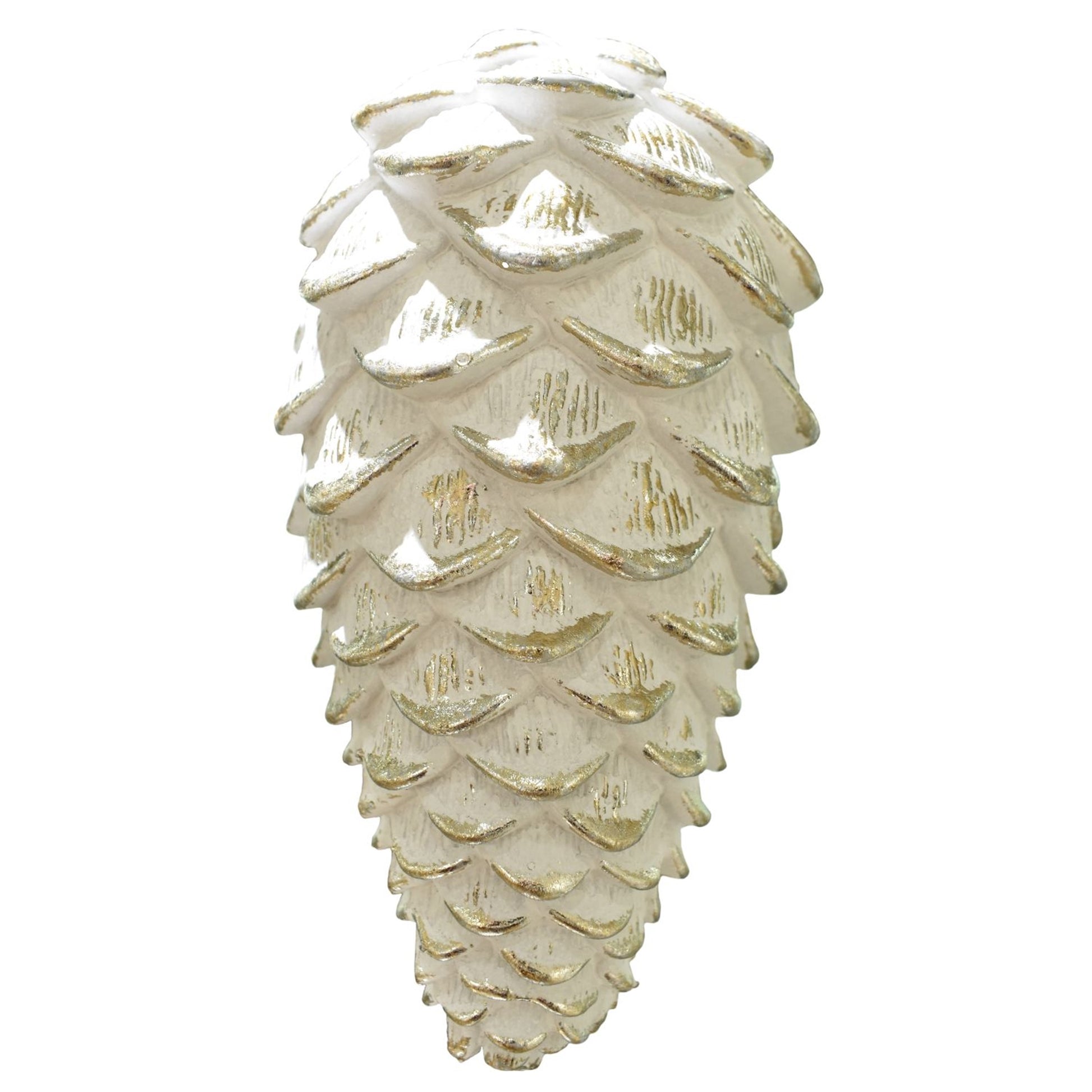 9'' Plastic Cone Ornament in White with Metallic Gold Finish
