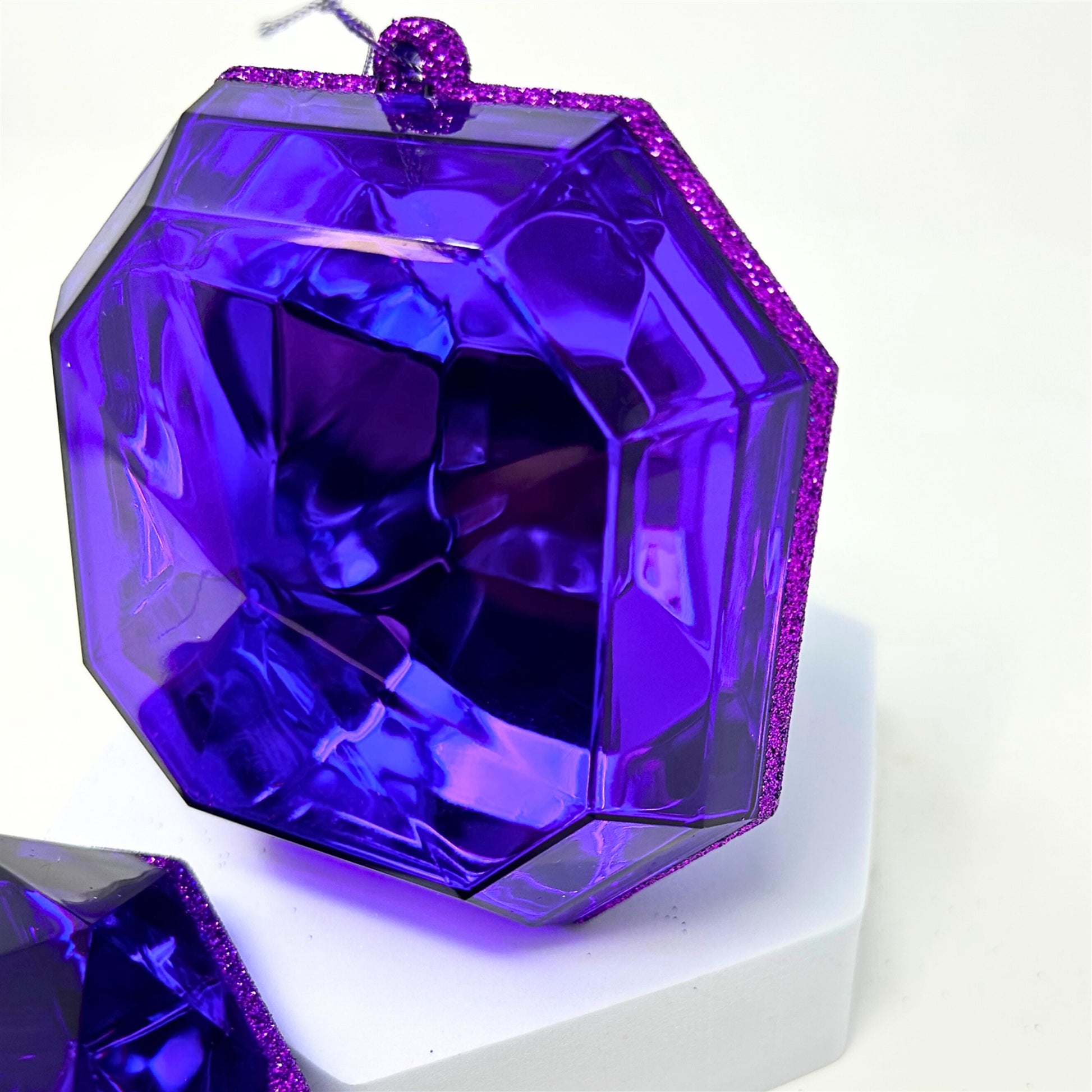 Celebrate the holiday season with this elegant set of two acrylic precious gem ornaments in midnight purple. Each set of these 4-inch ornaments features a sophisticated round and square design, adding a refined touch to your Christmas tree or festive décor. Crafted for durability and brilliance, these ornaments bring a timeless sparkle that enhances any holiday setting with expert craftsmanship and style.