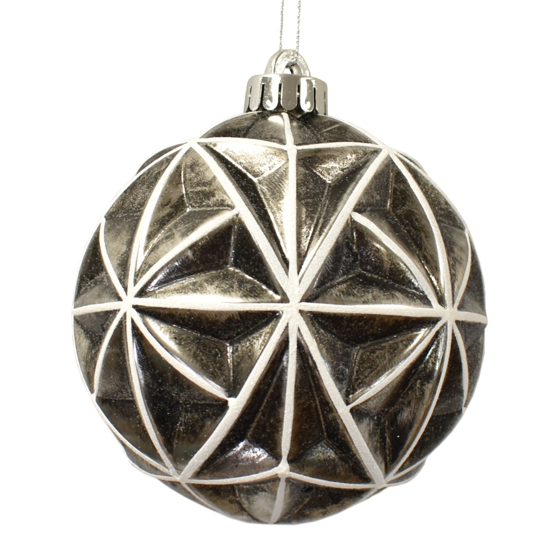 Antique Pewter Geometric Ball Ornament 5" | XJC22