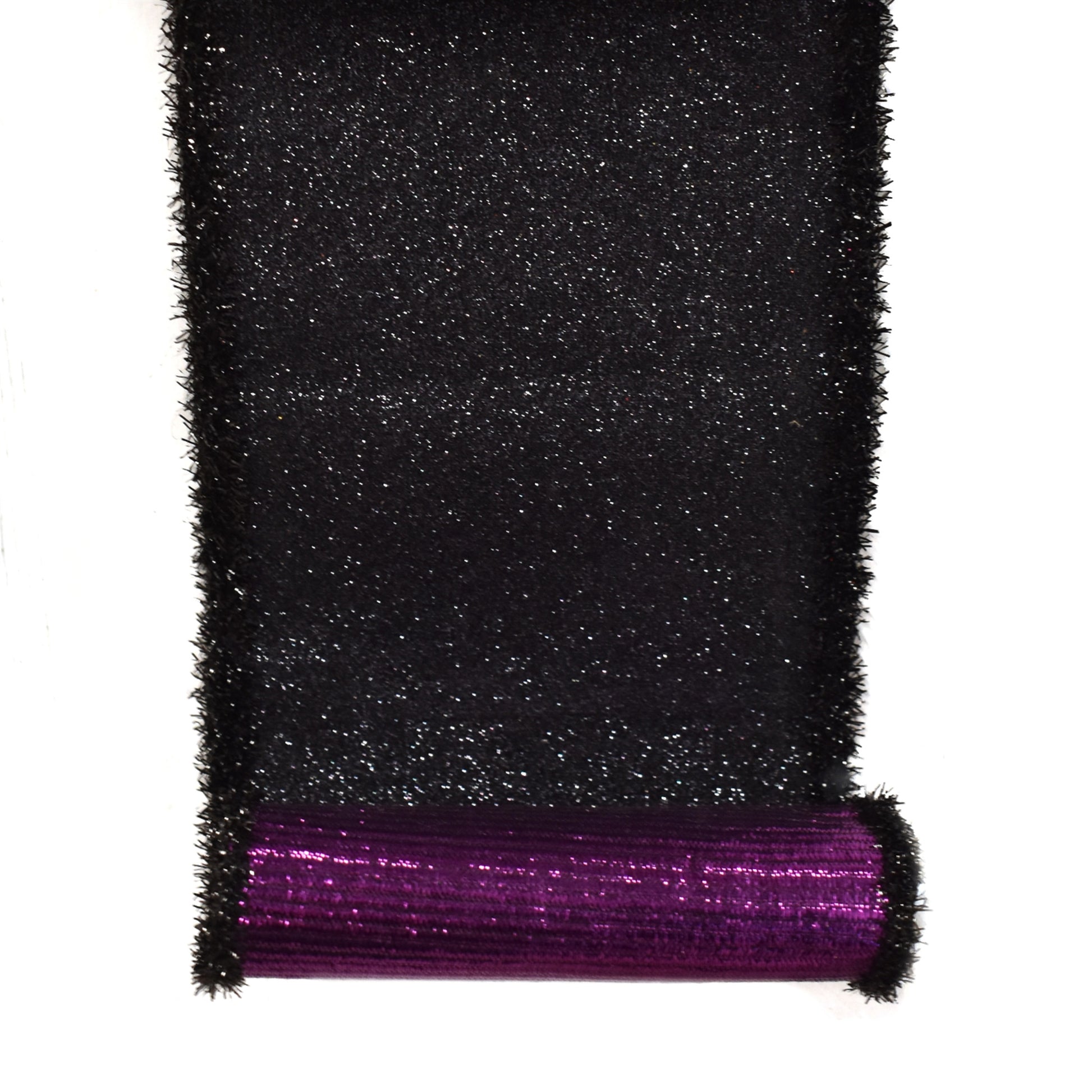 Black Glittered Ribbon with Tinsel Edge and Purple Backing 4" x 10YD | IRC22