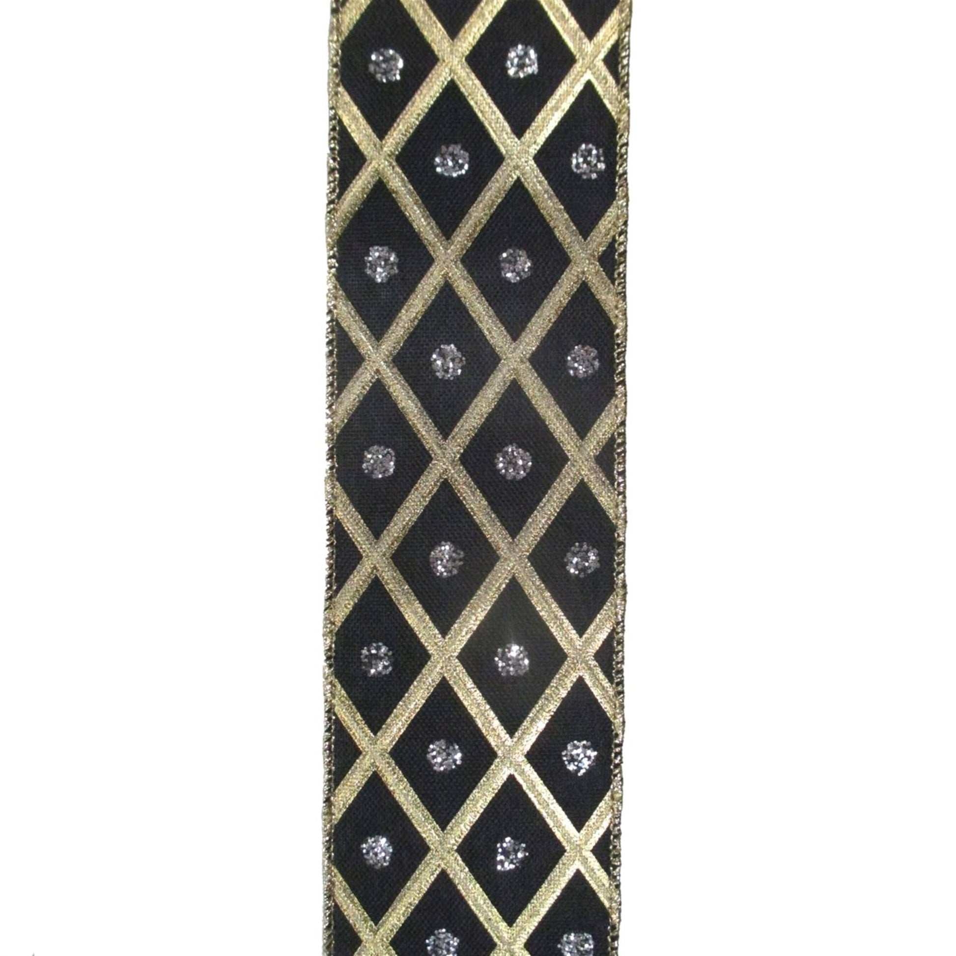 Black w/ Metallic Gold Diamond Print with Silver Dot Ribbon 2.5" x 10yd | YT