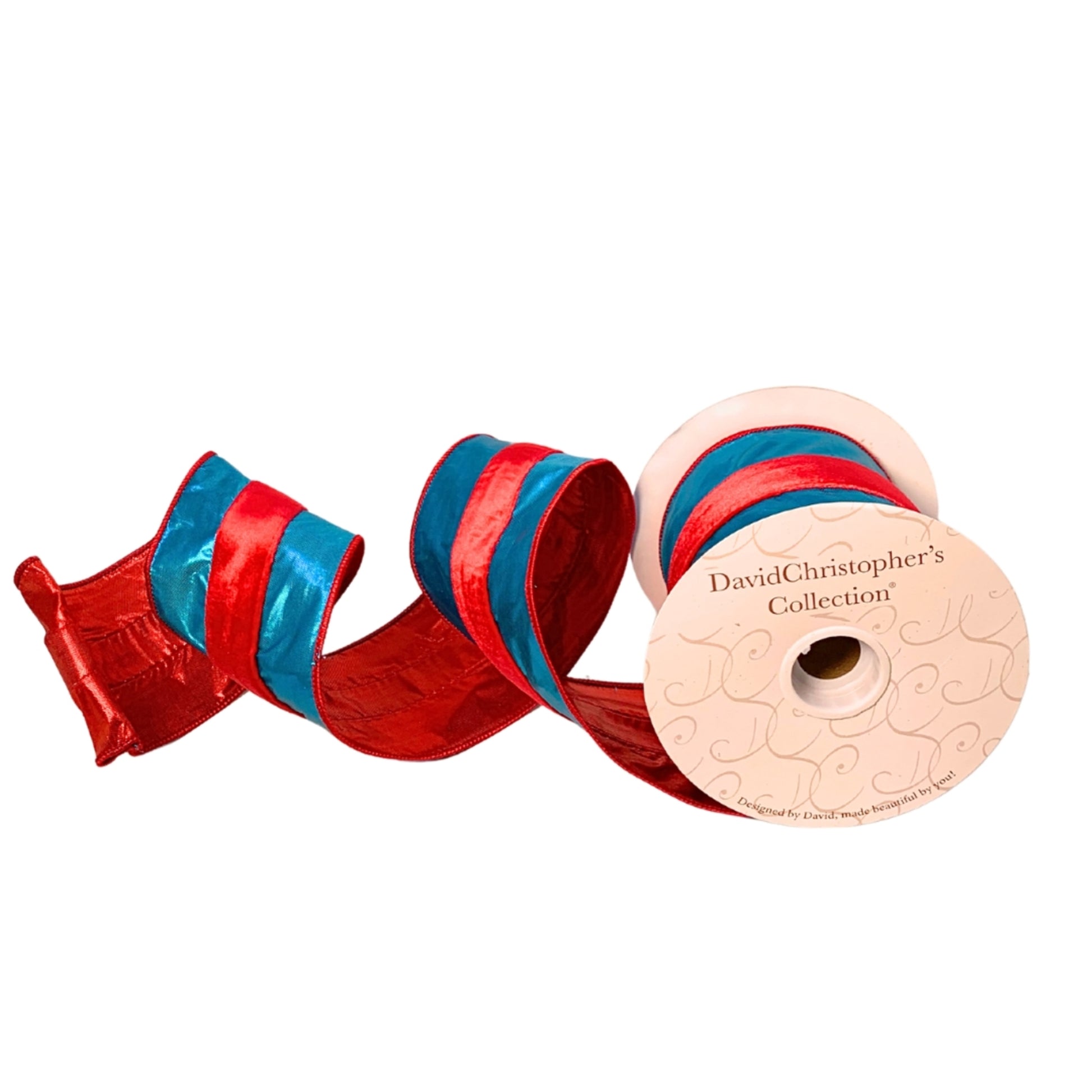 4”X10YD Blue Metallic Faux Silk w/ Red Center Ribbon | IR